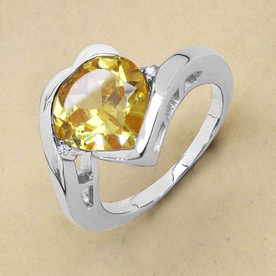 Featuring a 5.77-carat yellow cubic zirconia, this ring radiates elegance and charm. The heart-shaped yellow stone is framed by two brilliant white cubic zirconia accents, set in high-quality .925 sterling silver. The sleek, contemporary design makes this ring a versatile accessory that can be dressed up for formal events or worn daily for a touch of sophistication and sparkle.