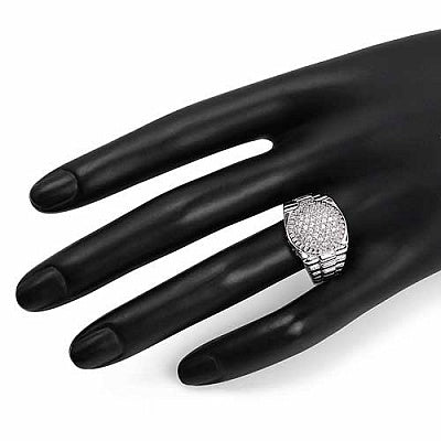 Make a bold statement with the BridalMe 0.55 CTW White Cubic Zirconia Cluster Ring. Featuring a dazzling array of sparkling cubic zirconia stones set in an intricate cluster design, this ring offers maximum brilliance and shine. The polished .925 sterling silver band enhances its luxurious look, making it the perfect accessory for those who appreciate eye-catching elegance.