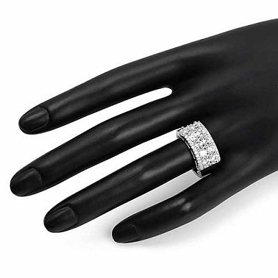 Make a dazzling impression with the BridalMe 3.70CTW White Cubic Zirconia Cluster Ring. The structured design boasts three rows of expertly set cubic zirconia stones, maximizing sparkle and shine. Set in .925 sterling silver, this ring offers both luxury and durability. Whether worn as a glamorous everyday piece or for formal events, its bold design ensures you’ll stand out with elegance and style.