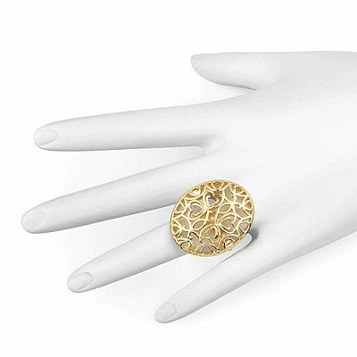 Infuse your look with romance through this beautifully crafted Gold Plated Brass Filigree Ring. The delicate heart-shaped details radiating from the center create a harmonious, intricate design that symbolizes love and elegance. With its circular form and luxurious gold-plated finish, this ring offers both durability and charm, making it perfect for any occasion. Its intricate openwork adds a sense of lightness, ensuring comfort while making a bold fashion statement. This eye-catching piece is ideal for those who appreciate craftsmanship with a touch of sentiment.